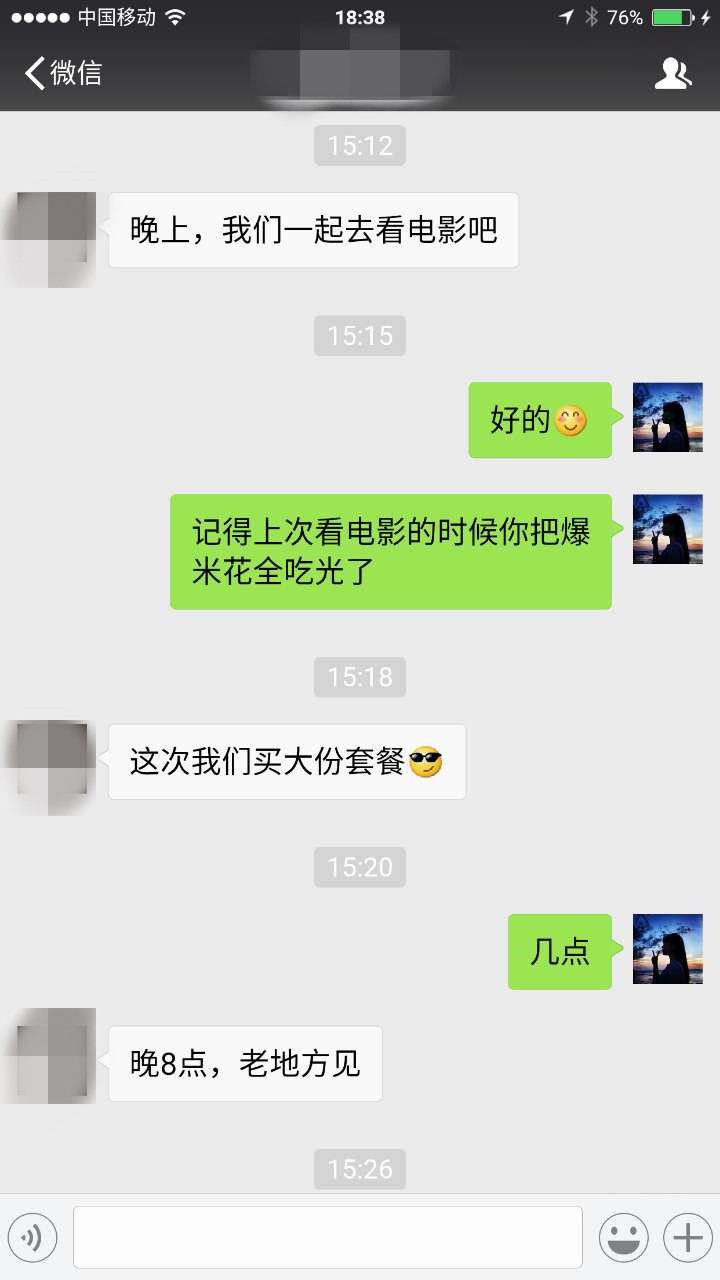 刘明老师说教我:通过展示共同的经历,让他回想当时经历的画面,去体验画面里的美好。让他潜意识里觉得,跟我在一起还是很开心的。当美好的经历不断累积的时候,就会出现复合的时机。在接下来的日子里,刘明老师不断帮我策划,我们每隔几天就会相互问候,就像是朋友在聊天,不需要露出任何的需求感,聊我们一起经历的有趣的事情。在一个周五下午,我突然收到了他的一条微信:“娜,晚上要不要一起去看电影?”